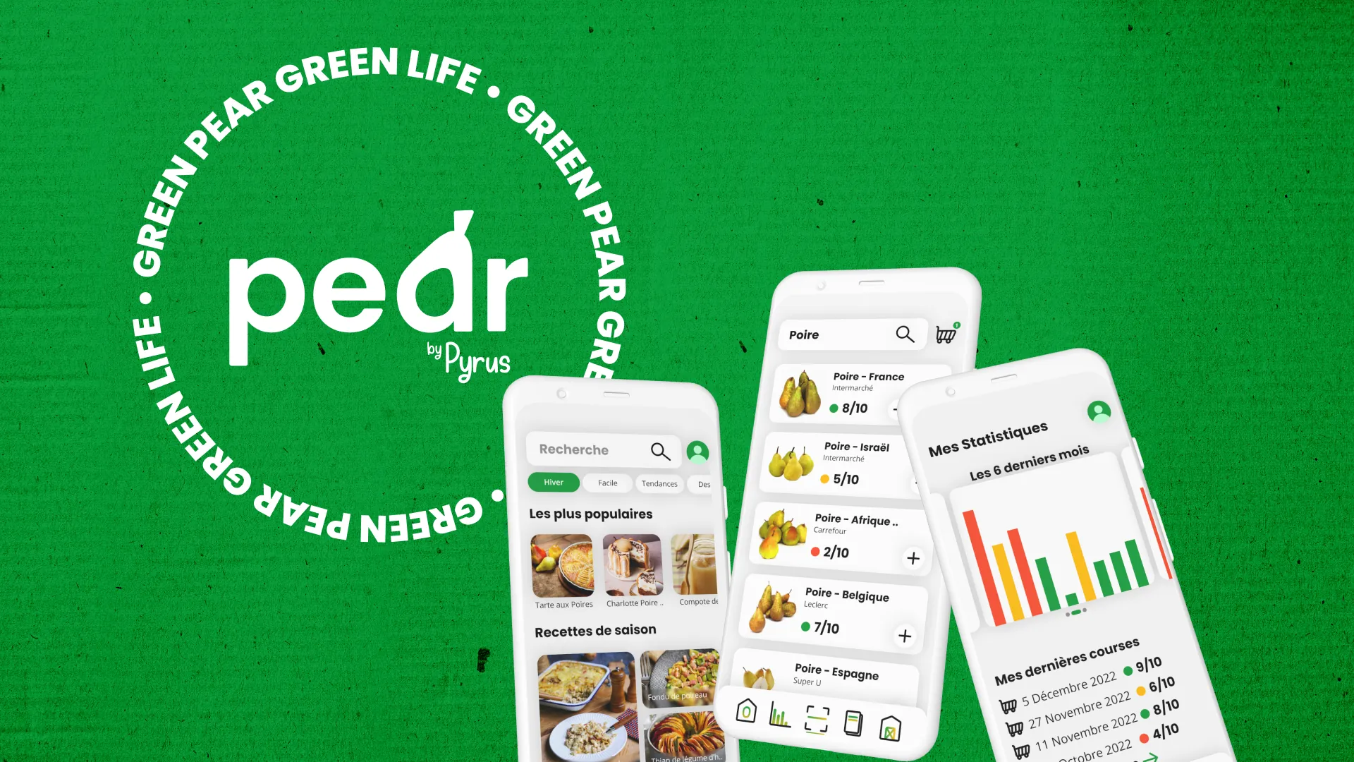 Pear est une application fictive imaginée pour un projet étudiant, pour laquelle j'ai créé des logos, une charte graphique ainsi qu'une maquette de l'interface